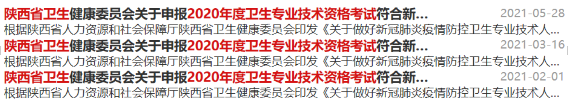随后在2021年,陕西省卫健委2月、3月及5月分3批对符合2020年度卫生专业技术资格考试符合新冠疫情一线考生办理省级资格证书人员进行了公示。