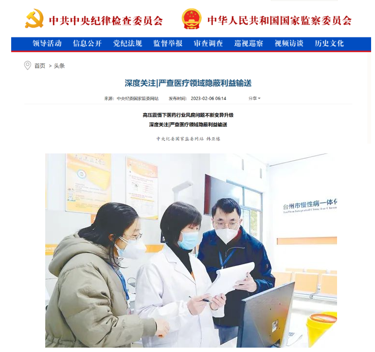 针对医疗行业特点,浙江省临海市纪委监委强化监督举措,通过实地走访,检查相关账目、制度等方式,核查是否存在失职失责、利益输送等问题。