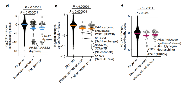 与健康组织相比,肿瘤的代谢速率更低 这些新的发现带来了新的疑问:如果肿瘤细胞制造和使用能量相对较慢,那它们是如何维持快速增殖的? 肿瘤往往不能发挥其来源组织的正常功能。例如,健康胰腺的主要功能之一是产生消化酶,但胰腺肿瘤细胞则不产生这些酶,而生成和分泌这些酶往往需要消耗大量的能量。因此,通过避免这些正常的组织功能,肿瘤细胞节省了大量ATP,然后这些ATP可以用于细胞增殖。