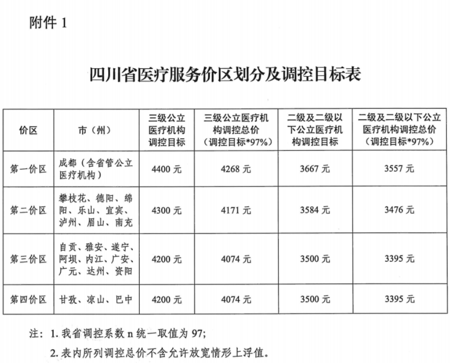 1.四川省医疗服务价区划分及调控目标表