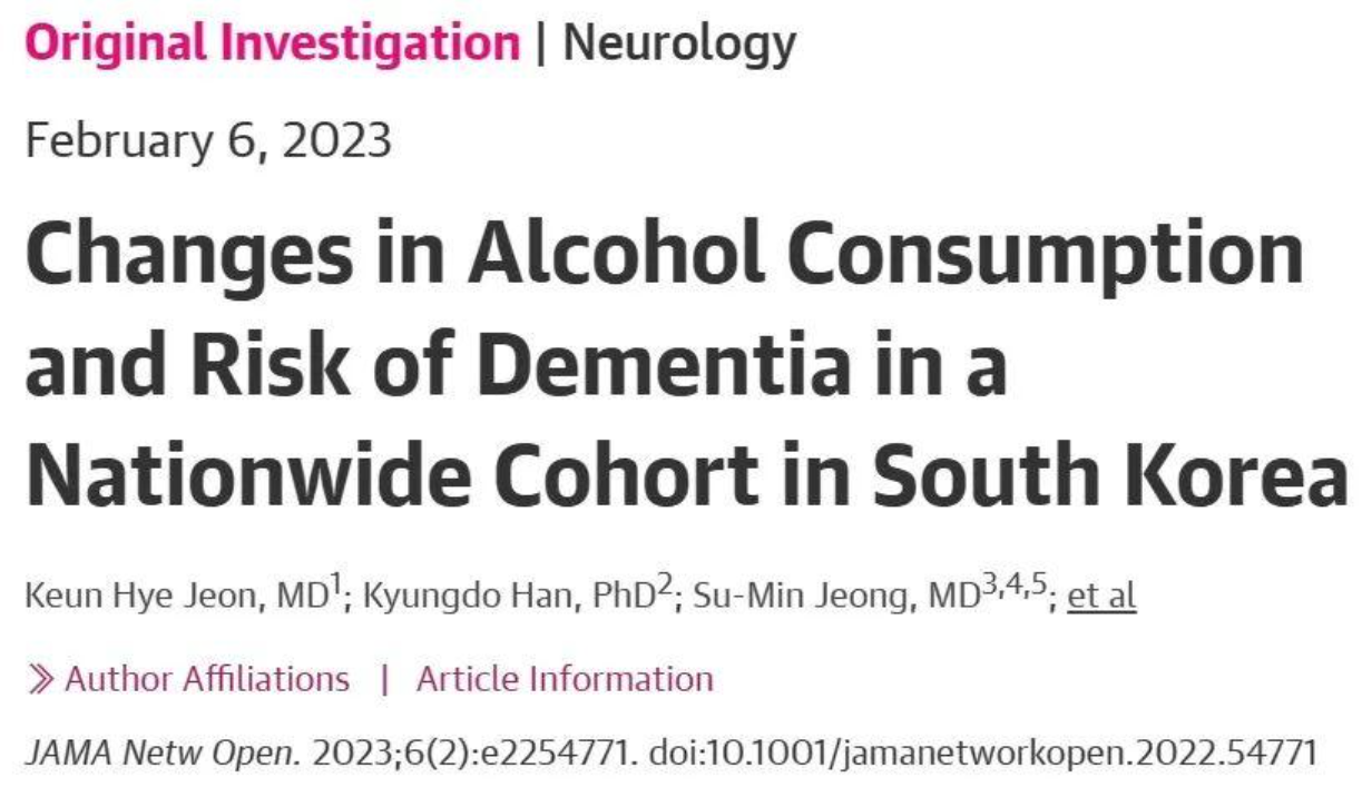 近日,研究论文“Changes in Alcohol Consumption and Risk of Dementia in a Nationwide Cohort in South Korea”发表在《JAMA Network Open》上,通过对超393万人的全国回顾性队列研究表明:与不饮酒的相比,轻度至中度的饮酒与罹患全因痴呆风险降低21%和17%有关,但重度饮酒则会增加痴呆症的发病率。
