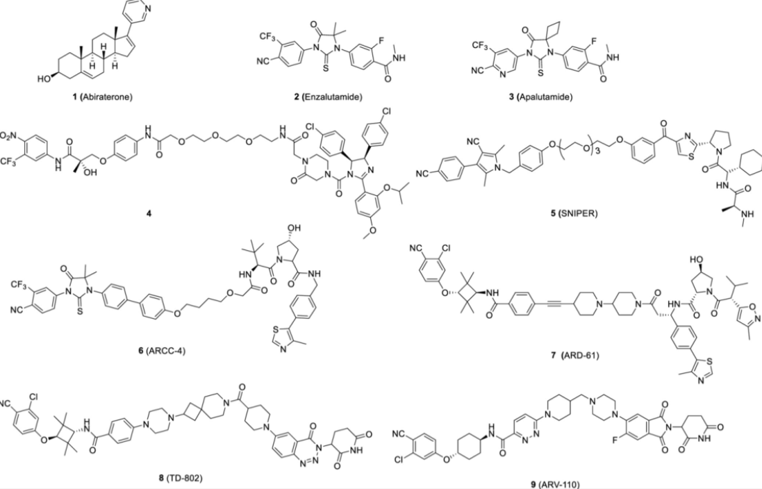 目前为止,已经报道了一些类别的PROTAC AR降解剂。
