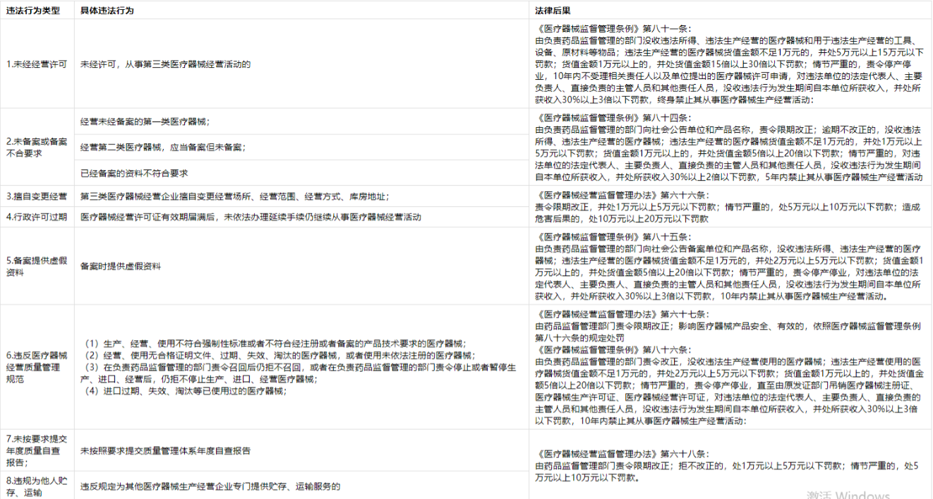 医疗器械违规销售行政处罚类型主要集中在以下8类:
