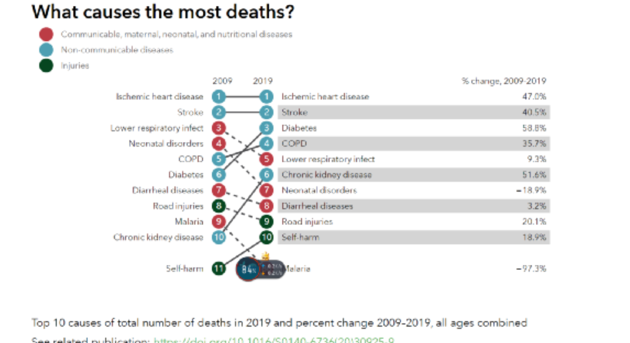 瓦努阿图2009、2019年致死危险因素中缺血性心脏病排名第一