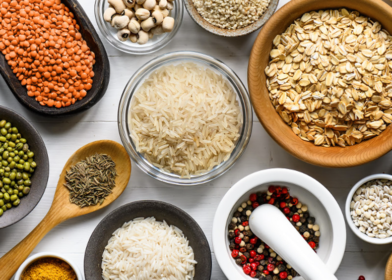 2、 进一步来说,就是选择丰富的未经加工的碳水化合物,如:糙米,燕麦,全麦,藜麦,荞麦或者豆类。这类天然的未经加工的碳水,含有大量的麸皮,可以提供膳食纤维、维生素和矿物质。其实糙米就是我们平时吃的精制大米的未加工版。这类健康食物可以使我们消化的速度减慢,让我们有长时间的饱腹感,饱腹感的增加会让我们减少摄入,也就是说比普通的食物要管饱得多,吃得少。